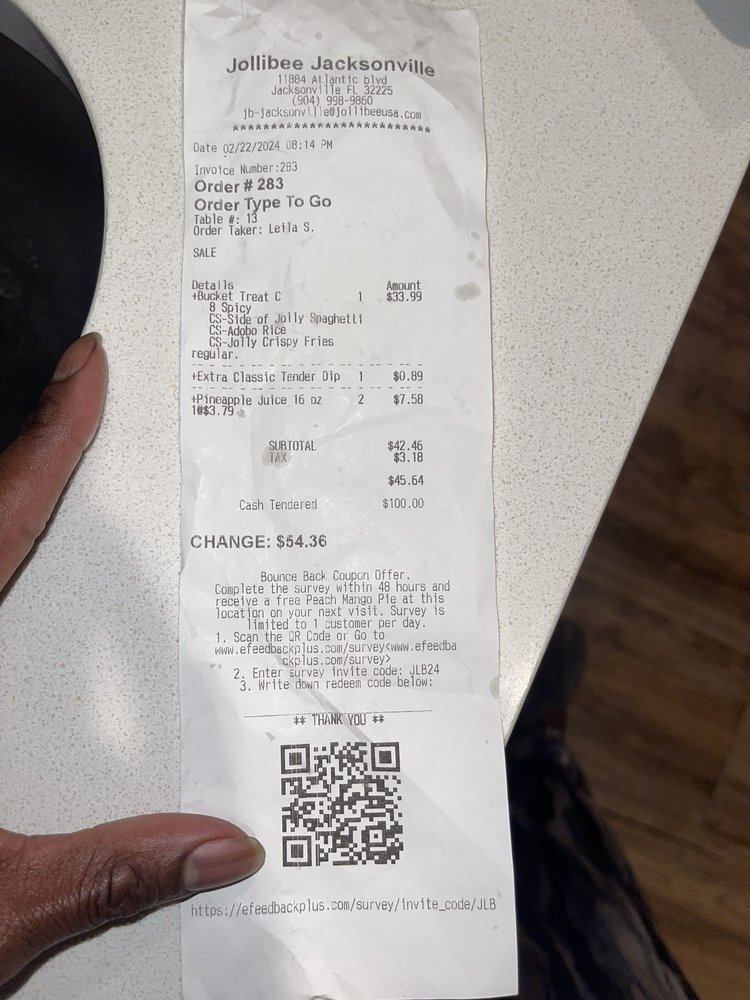 Each dish at Jollibee Jacksonville feels like a warm hug, echoing the joyful spirit of Filipino culture. Our friendly staff and the restaurant's lively ambiance make every visit memorable. Come for the food, stay for the joy!